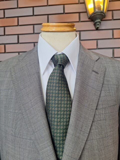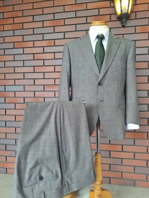 オーダースーツ/ベージュチェック/2ツボタンサイドベンツ/3シーズン対応/30代