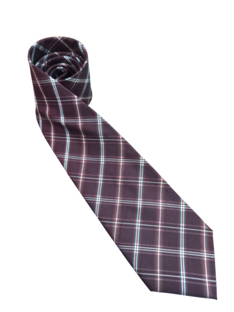 100%シルクネクタイ/ボルドーチェック/ビジネス/会議/出張/リモート/20代~オススメ