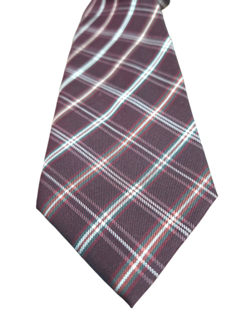 # 100%シルクネクタイ/ボルドーチェック/ビジネス/会議/出張/リモート/20代~オススメ