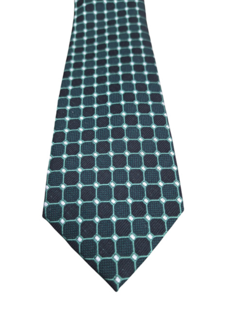 # 100%シルクネクタイ/小紋折り柄グリーン/ビジネス/会議/出張/リモート/パーティ/20代~オススメ