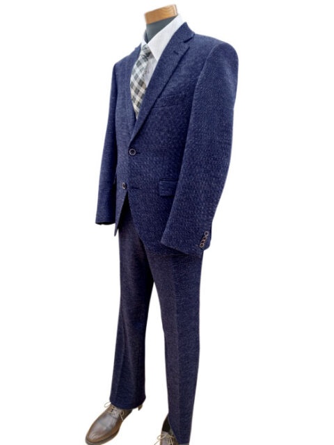 ウールストレッチ素材のスッキリシルエットのブルーネイビー スーツ