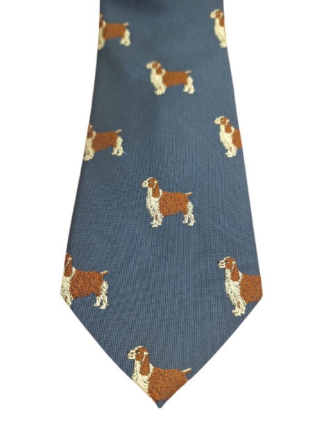 # シルクネクタイ/ネイビー織り柄/犬/ビジネス/会議/出張/リモート/ギフト