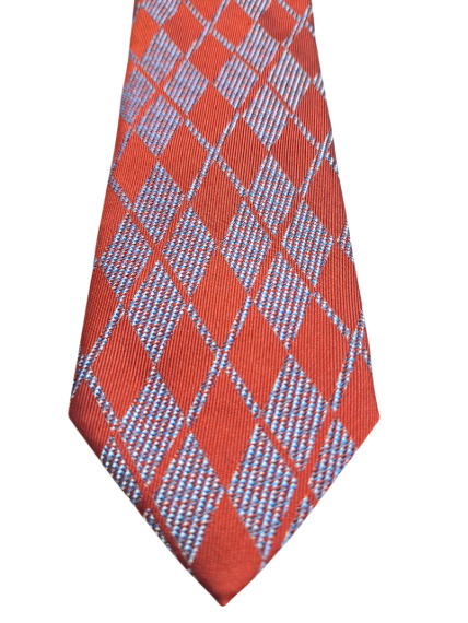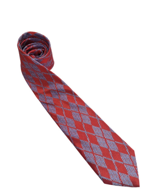 シルク製のイタリア生地使用のレッドアーガイル柄ネクタイ