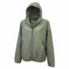 ポリエステル100%のケルプベージュの極薄クール耐久撥水フード付きブルゾン。多様なシーンでの使用に適しており、スタイルを選ばない便利なアイテムです。