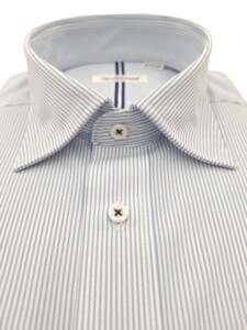 防汚ニットシャツ/ノーアイロン/ポリエステルニット/ストレッチ/白地サックスストライプ/セミワイド/