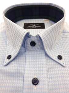 スマートシルエット/カラフルマルチデザインシャツ/ボタンダウン/サックス千鳥M-LLサイズ