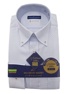 綿100%/形態安定/スタンダードシルエット/市松柄/ブロック/サックスボタンダウン//柔らかい着心地/M~3L