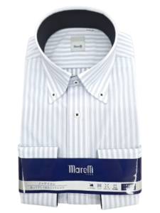 綿100%/形態安定/スタンダードシルエット/ホワイト×ネイビーボタンダウン/柔らかい着心地/M~LL