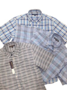 レギュラーカラー/サックスドビ-市松柄/ピッタリシルエット/形態安定/お手入れ楽ちん/