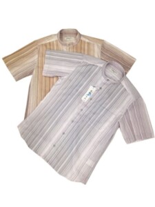 日本製/高島ちぢみ/スタンドカラー/ベーシュ・薄紫ストライプ/半袖/父の日ギフト/メンズ/シニア/0代 60代 70代 80代 誕生日 ラッピング無料