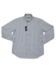 ARAMIS(アラミス)高級綿生地使用/日本縫製/グレー×グリーンストライプ/長袖シャツ/M.L.LL