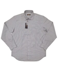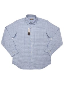 ARAMIS(アラミス)高級綿生地使用/日本縫製/小チェック/ブルー/中肉/長袖シャツ/M.L.LL